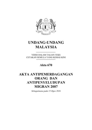 Akta Antipemerdegangan Dan Penyeludupan Migran Atipsom Akta 670